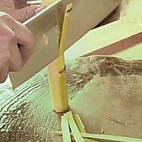 Make: 1. Peel the sugarcane, split it vertically into long sections, and put six sections into the bottom of the plate.