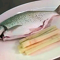 2. Kill the bream alive, rinse the blood, place it on the sugarcane section, and apply a layer of garlic tempeh sauce on the fish.