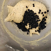 Here I added some high-temperature resistant chocolate beans, if you don’t have it, you can not add it, I added about 20 grams, and the chef kneaded the dough at low speed and mixed.