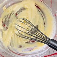 Add the egg liquid in multiple portions, stirring until smooth each time.