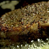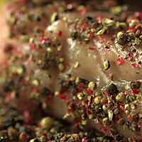 Take the steak out of the bag and stick it with crushed rainbow pepper