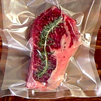 Sprinkle the steak with salt and black pepper on both sides, put it in a vacuum bag and add the rosemary to vacuum