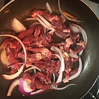 Heat oil in a pan, put down the onion slices and stir-fry to taste