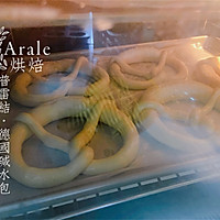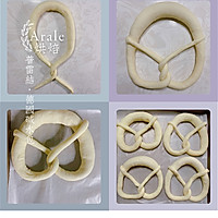Bend back to the middle on both sides, cross to form a knot, and turn the knot upwards to form the Preknot style in the picture. Make a pre-knot in turn, like a soft taste, ferment at room temperature 28 °C for 20 minutes and then freeze (or ferment after freezing: temperature 32 degrees, humidity 85% proofing for about 30 minutes), if you like a solid taste, you can freeze it directly for half an hour to one hour to set the shape.