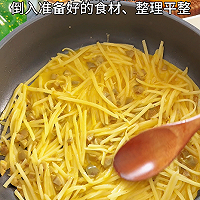 Spray oil on the pan, pour in the prepared ingredients, and arrange and level.
