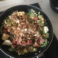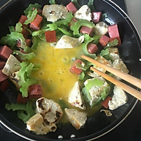 Ham can be replaced with pork or other meats you like, because I don’t like to eat bitter gourd, so I chose ham, a richer substitute, the mixed taste of wooden fish flower and ham is very appetizing. Ginger juice is not a necessary seasoning, you can not add it, but people who feel cold can take some. Although it is winter, the heating in the north is really good, so I am a little unaccustomed to it, and I will catch a cold if I don’t pay attention. However, I am not used to eating at all, but I still use more ingredients to neutralize the bitterness, which is unexpectedly appetizing. The Japanese translation of the Japanese name of this dish is messy bitter gourd, which sounds like a name that makes people want to try.
