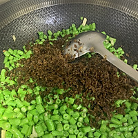 Add a small spoonful of salt (if you use olive vegetables to add less salt), a spoonful of light soy sauce, and stir-fry evenly