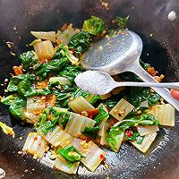 Pour in thick-skinned vegetables and stir-fry evenly, add monosodium glutamate.