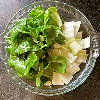Wash the thick-skinned vegetables, cut the stems and leaves into short sections; Chop the garlic and ginger.