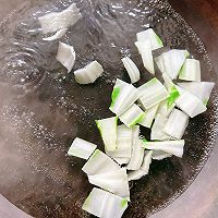 Lower the thick-skinned vegetable stalk and cook for 8 minutes.