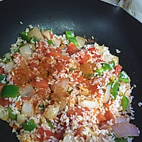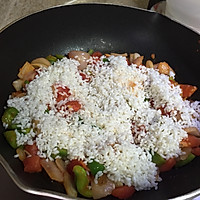 Add rice and stir-fry well (in fact, you can put the saffron down here and mix well, otherwise the color will not be evenly enough)