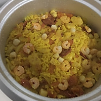What it looks like after putting it in the rice cooker (generally you should cook shrimp, fresh shellfish and other seafood first, keep the soup and pour it into the rice, I put it directly raw)