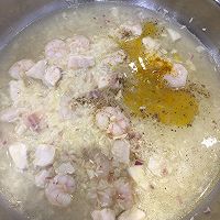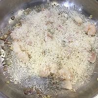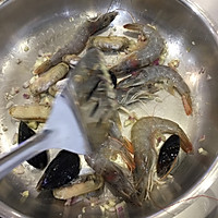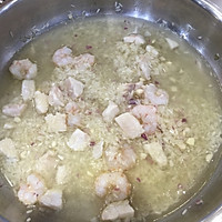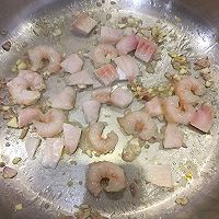 Add shrimp and fish. Be careful not to stir-fry too hard to make it crumbly. Fry one side and turn it over