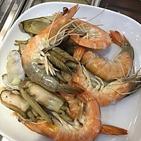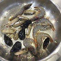 Chopped onion and garlic sautéed in olive oil and added to the seafood