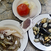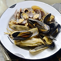 Put the clams, rainbows and clams in the pot and cook until they are just opened, and strain the seafood soup for later use