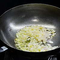 Add olive oil to the wok and sauté the minced pesto and chopped onion over low heat