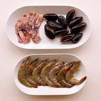 Remove the shrimp line, cut off the shrimp whiskers, wash the mussels, wash the squid and cut it into small pieces.