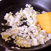 Pour an appropriate amount of olive oil into the pot, add minced garlic and diced onion and stir-fry until fragrant.