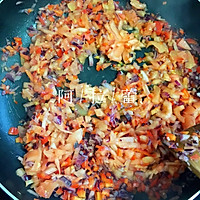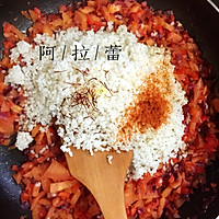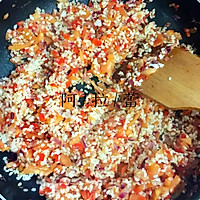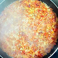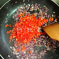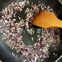 Put two and a half spoons of olive oil into the pot, add minced garlic when it is 80% hot, stir-fry until fragrant, add diced onions and stir-fry
