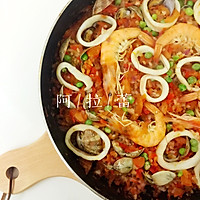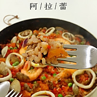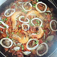 1. If you use squid, you must remember to tear off the red skin on the outside first, because if you don’t tear it, the red skin will ruin the color of a pot of rice. 2. The squid rings can be put in some oil first, and finally placed on the rice with other seafood to cook, so that the squid will be more delicious after it comes out of the pot. 3. The pot body can be rotated throughout the process to make the heating more even. 4. If you can’t buy paella rice, you can use Northeast pearl rice instead. 5. Put a small amount of saffron at a time, if there are too many, the special fragrance will be unbearable! 6. I didn’t put lemon in the picture, lemon juice in cooking will ruin the taste of paella, you can put some lemon after the pot, or add a little lemon juice to the portion you eat. 7. Seafood can be selected according to your own taste. 8. Do not turn the rice after adding the broth, otherwise the starch of the rice will come out and the rice will become soft and slimy. 9. The rice made from authentic paella should have some sticky teeth and a little bit of a sandwiched texture.