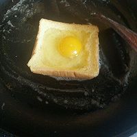 Crack the slices of bread with eggs and fry in a well-rubbed butter pan