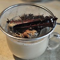 Strain the milk tea through a small sieve, filter out the spices, and let the filtered Indian spice latte tea cool and set aside