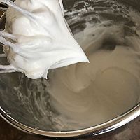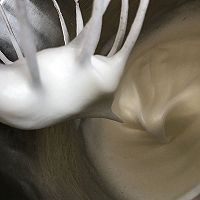 Add 1/3 of caster sugar again, stirring at medium speed, stirring until the sugar is completely dissolved, pulling up the beaten egg head meringue with sharp corners