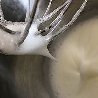 Add one-third of caster sugar and continue to stir on medium-low speed, stirring until the sugar dissolves, pulling up the beaten egg head with sharp corners