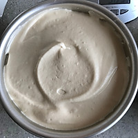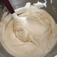 Stir with egg soy sauce to make a uniform batter, stir not too long to avoid tendons, just stir well quickly After the egg yolk paste is mixed, stir the meringue with the egg soy sauce to check whether the meringue is delicate and stable, if it becomes rough, you can stir it slightly with a manual egg soy sauce, and when the meringue is delicate and shiny, you can mix the egg yolk paste