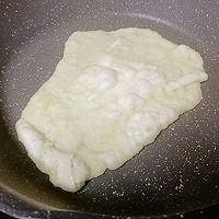 Lay flat on a pan (no oil) until the dough is bulging, turn over.