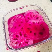 Prepare the above ingredients, cut the dragon fruit into pieces, and slice the lotus root