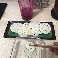 After the lotus root slices are cooked, put them in cold water and set aside