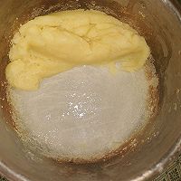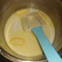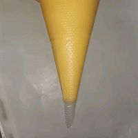 Add the egg mixture in batches and mix it until the spatula is lifted, the moist batter can slide off freely, and the smooth triangle is formed on the spatula after it slides off, and the eggs may not be used up