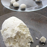 Take out the milk tofu ball and knead it into long strips with your hands, divide it into small portions, then gently knead it into glutinous rice balls, and then flatten it slightly. This serving size can be roughly made into 30-40 milk balls.