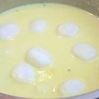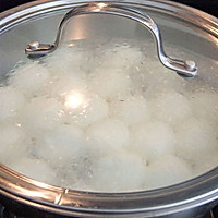 Boil the sugar water in the pot, gently put the milk balls in one by one, and remember to leave half (enough) space for the milk balls to expand.