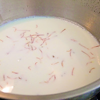 In a pot, add the sugar water you just took out and add saffron to a boil.