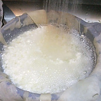 Add the milk tofu you just made and knead it well. This process takes about two minutes, just stir the milk tofu into a ball.