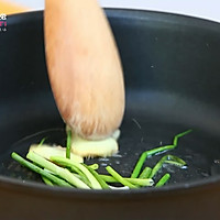 Heat the pan with cold oil, stir-fry the chives and ginger, pour in the ribs, add 10g of light soy sauce, 8g of dark soy sauce, 10g of oyster sauce, 5g of salt, and 10g of sugar and stir-fry evenly.