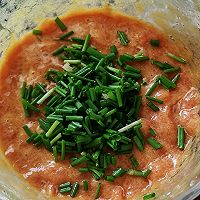 Wash the pork tenderloin, cut it into small pieces, add salt, cooking wine, scoop the juice, put it in a blender and stir it into a meat sauce, beat in the eggs and beat a little bit and mix well.