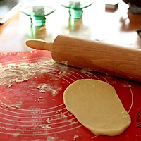 Use a rolling pin to roll out the small dough into a long oval shape, about 1 cm thick.