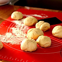 Place the dough on the panel, sprinkle a little dry noodle and divide evenly into 8 small doughs.