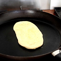 Heat the pan and brush a little oil, put the rolled dough cake in and bake it, brush a thin layer of oil on the surface of the dough cake for about 3 minutes, turn it over and bake for about 3 minutes to get out of the pan.