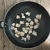 Stir-fry the pork belly until it is eight years old. (Take out the pork belly refrigerator and put it for a while to cut it better)