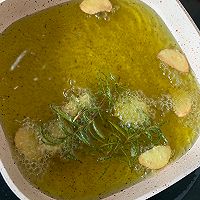Heat olive oil, add garlic slices and rosemary and fry until fragrant