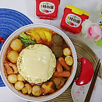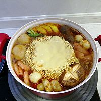 After boiling again, make sure all the ingredients are cooked, add the instant noodles and cheese slices, and turn off the heat