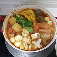 Then spread the ingredients in turn (put the easy-to-cook ingredients later), cover and fire
