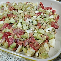 Cucumber, onion, tomato, boiled egg, parsley, basil, butter to taste, black pepper, salt to taste.