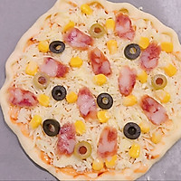 Put corn kernels, olives, and sausages