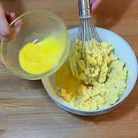 Finally, just pick up the batter into an inverted triangle. (If the dough cannot be formed into an inverted triangle, you need to add eggs as appropriate)