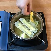 Heat the corn oil in the pot, put the chopsticks in to make small bubbles, and you can turn the heat to low. Throw the fried dough sticks you just squeezed into the pot.